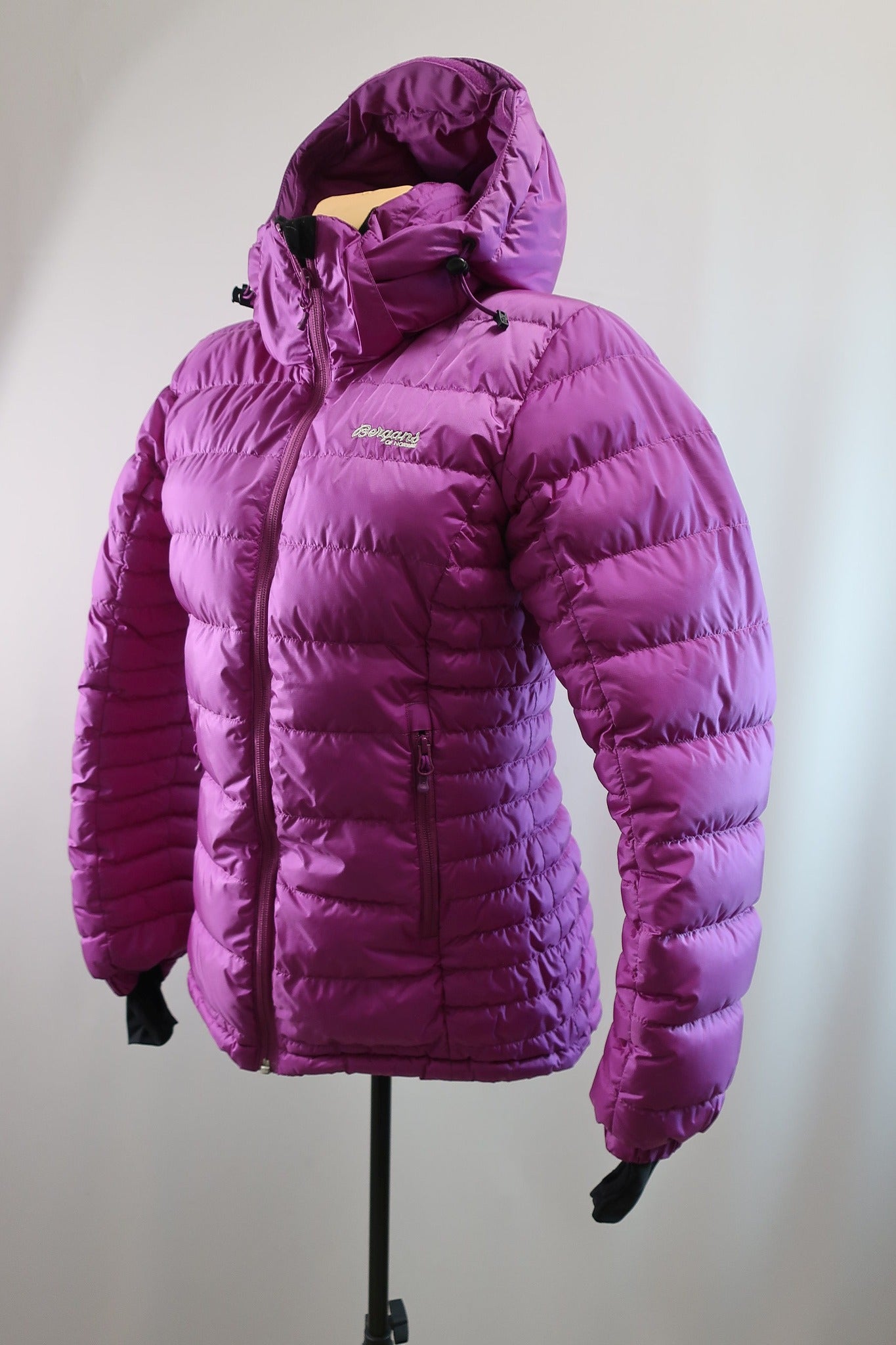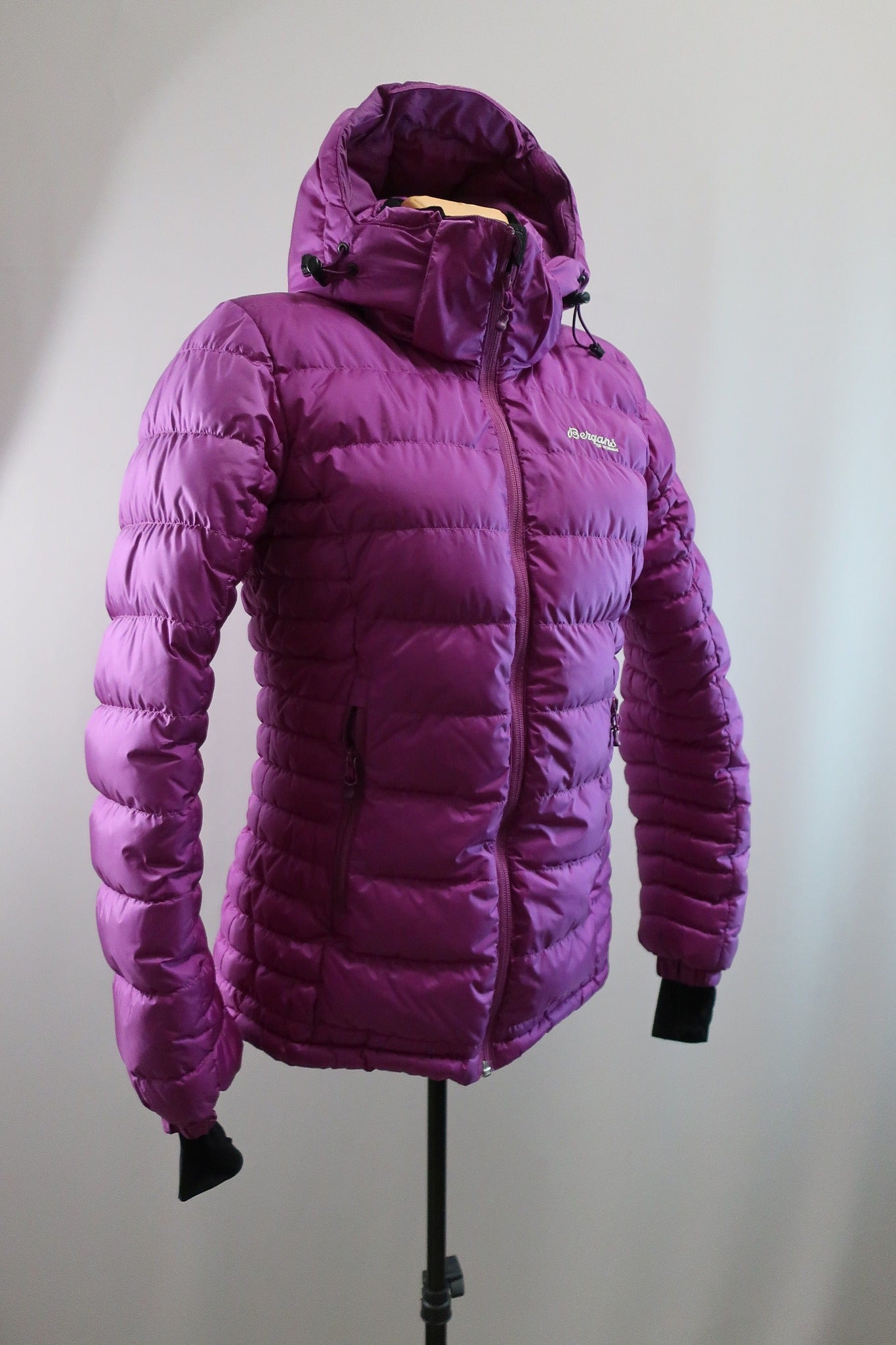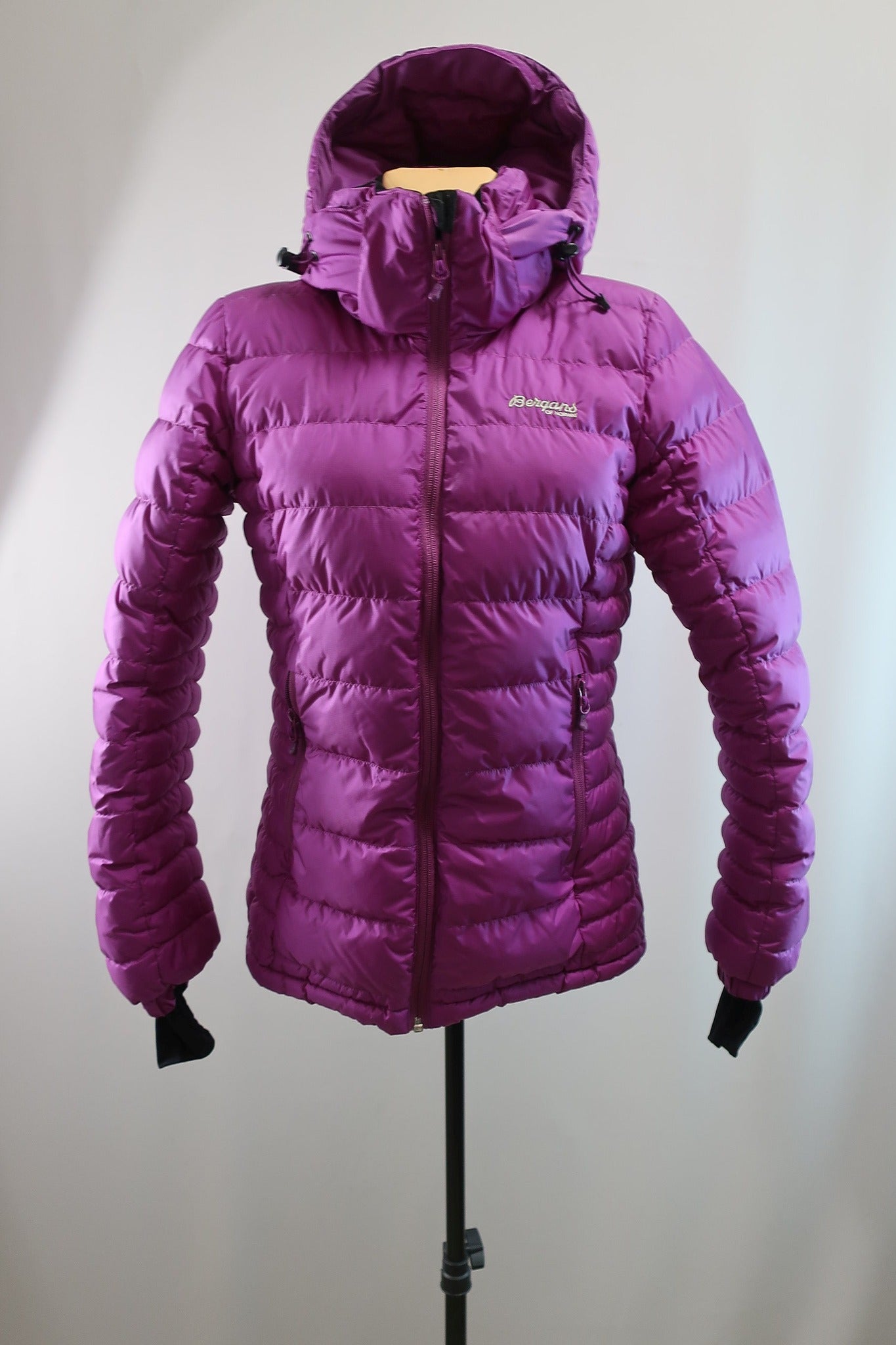 Norvegų gamintojo Bergans moteriška pūkinė striukė S dydis. Puikiai tiks tiek aktyviai veiklai, tiek kasdienybei šaltuoju sezonu. Kokybiška, patogi, šilta. Striukės apačia gali susitraukti, aukštesnė apykaklė apsaugos kaklą nuo perpūtimų, kapišonas gali reguliuotis. Rankogaliai turi papildomus trikotažinius rankogalius su ertme nykščiui. Pūkų suspaudimo jėga - 700 (pakankamai šilta). Pūkų užpildas - 90 proc pūkai, 10 proc plunksnos. Pūkai kokybiški, gerai susispaudžia. Modelis - Bergans Rjukan Down lady jkt. Naujos kaina apie 350 €. Daugiau apie ją:https://www.outnorth.com/bergans/rjukan-down-lady-jacket