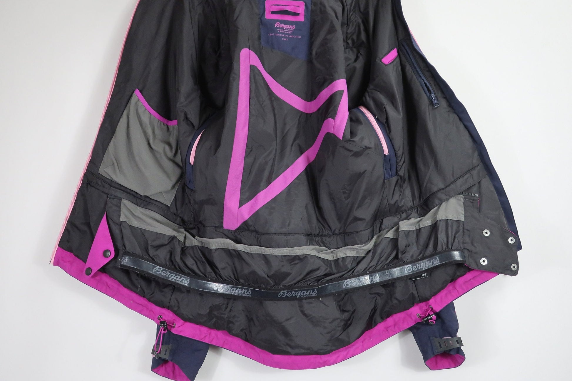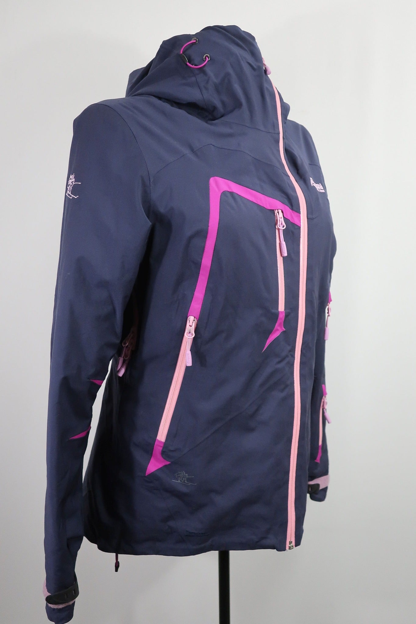 Norvegų gamintojo Bergans moteriška striukė S dydis. Kokybiška, patogi. Skirta slidinėjimui - puikiai tiks bet kokiai aktyviai veiklai - kelionėms, žygiams, laisvalaikiui gamtoje ir pan. Audinys turi tamprumo - nevaržo judesių. Atspari drėgmei, vėjui, kvėpuojanti - su Dermizax membrana. Su pašiltinimu - nėra visiškai plona. Pašiltinimas - Primaloft (pūkų pakaitalas). Aukštesnė apykaklė apsaugos kaklą nuo perpūtimų, su kapišonu. Apačia gali susitraukti. Užtrauktukai apsaugoti nuo drėgmės patekimo. Yra Recco daviklis. pažastų srityje yra ventiliacijai skirtos angos. Viduje yra sniego sijonas, kuris apsaugos nuo sniego, šalčio patekimo į vidų. Modelis - Bergans Isogaisa ins lady jacket. Naujos kaina apie 230 €. Daugiau apie ją: https://www.outnorth.de/.../isogaisa-insulated-jacket-lady