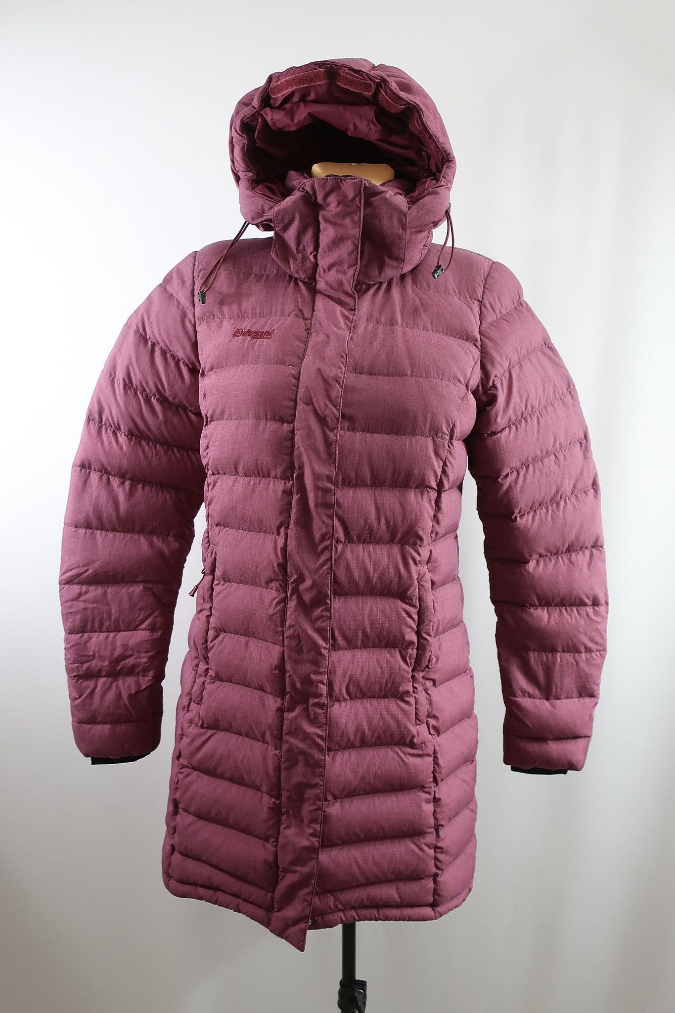 Norvegų gamintojo Bergans moteriškas pūkinis puspaltis S dydis . Puikiai tiks kasdienybei. Kokybiškas, patogus, lengvas . Užpildas - 90 proc pūkai, 10 proc plunksnos. Aukštesnė apykaklė apsaugos kaklą nuo perpūtimų, su kapišonu. Dailiai liemenuotas. Spalva - bordo.