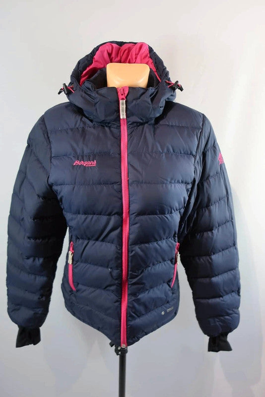 Norvegų gamintojo Bergans pūkinė striukė 152 ūgiui. Puikiai tiks tiek aktyviai veiklai, tiek kasdienybei . Kokybiška, patogi. Pūkai kokybiški, gerai susispaudžia, pakankamai lengva ir šilta. Užpildas - 80 proc pūkai, 20 proc plunksnos. Pūkų suspaudimo jėga 550. Su Pertex Classic .Aukštesnė apykaklė apsaugos kaklą nuo perpūtimų, su kapišonu, kuris gali susitraukti. Rankogaliai turi trikotažinius rankogalius su ertme nykščiui. Spalva - tamsiai mėlyna/rožiniai akcentai.