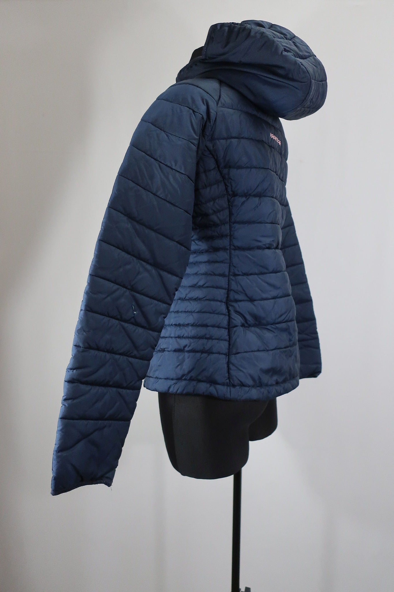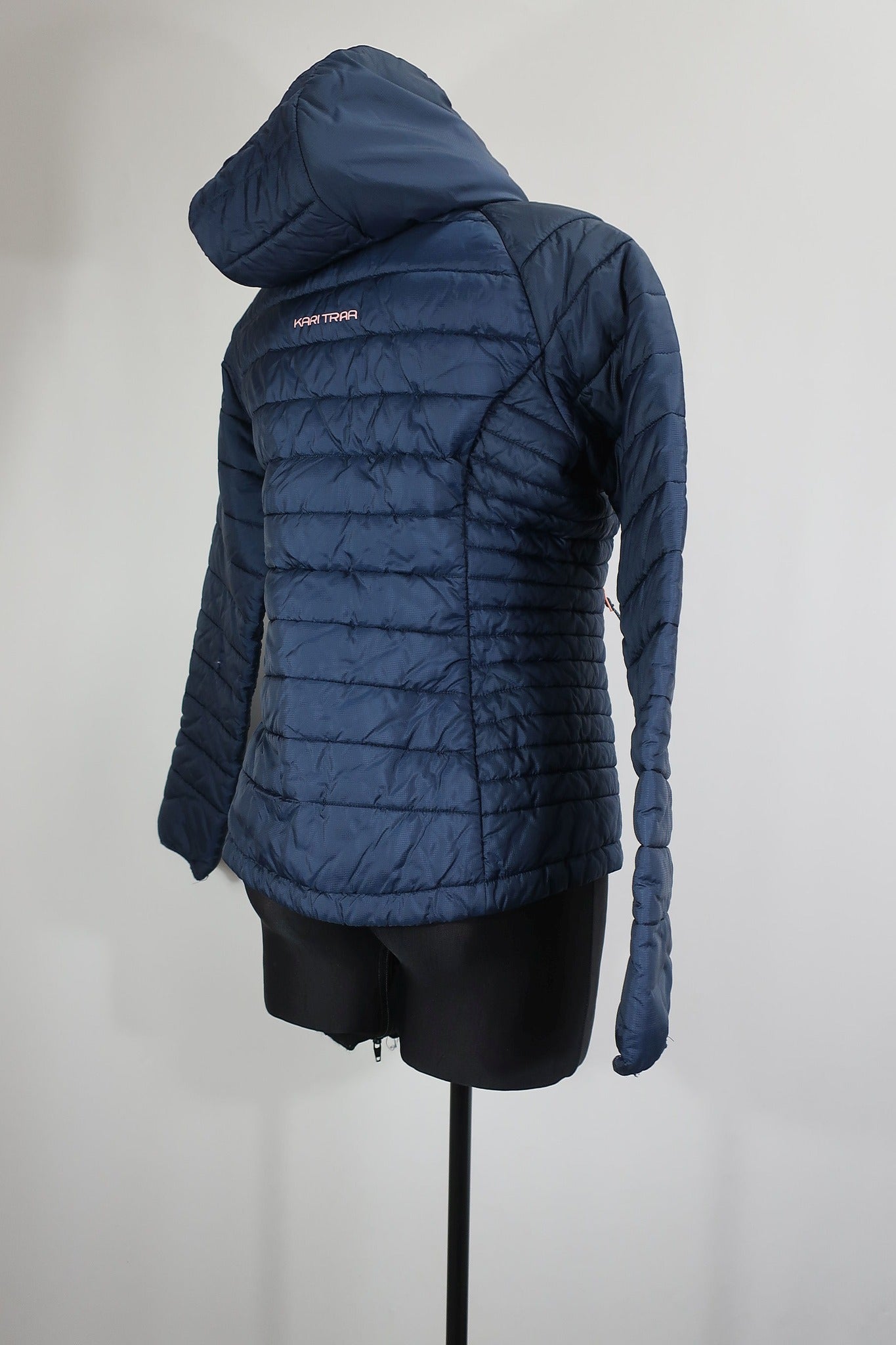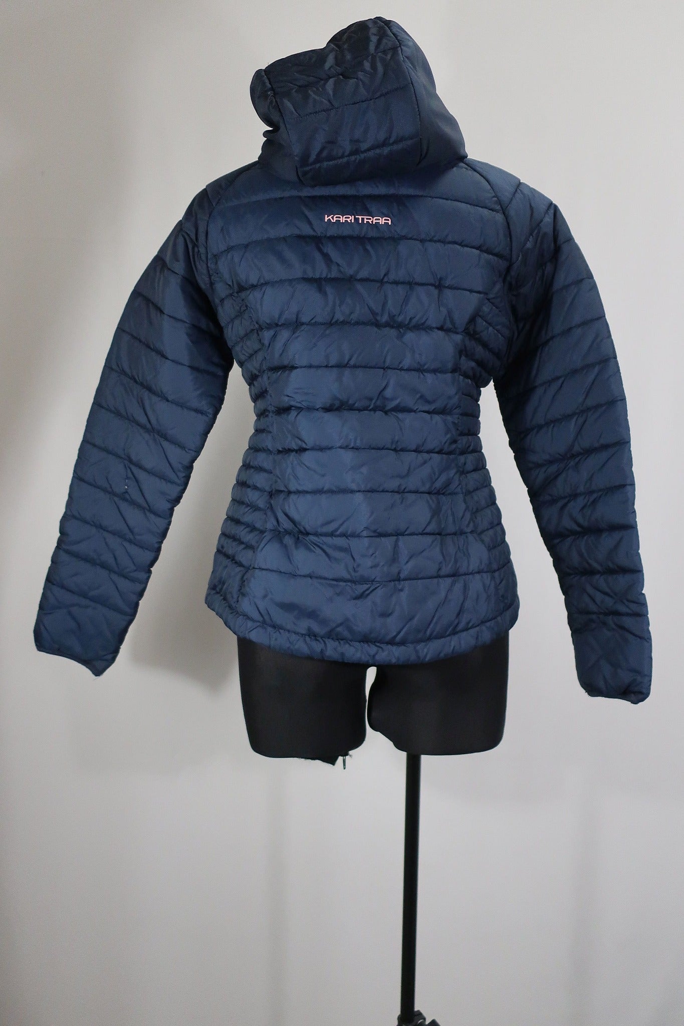 Norvegų gamintojo Karitraa moteriška striukė S/M dydis (nurodytas M dydis - į mažesnę pusę - geriausia žiūrėti pagal išmatavimus). Aukštesnė apykaklė apsaugos kaklą nuo perpūtimų, su kapišonu. Su pašiltinimu. Pašiltinimas - Primaloft (pūkų pakaitalas). rankovės viduje ties alkūne yra nedidelis susiuvimas. Dailiai liemenuota.