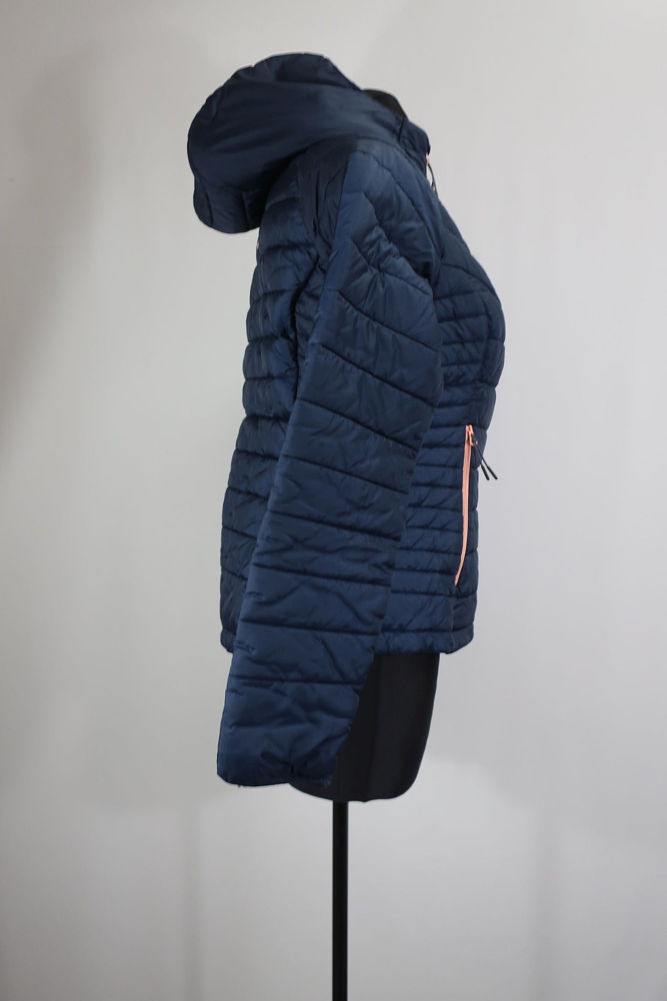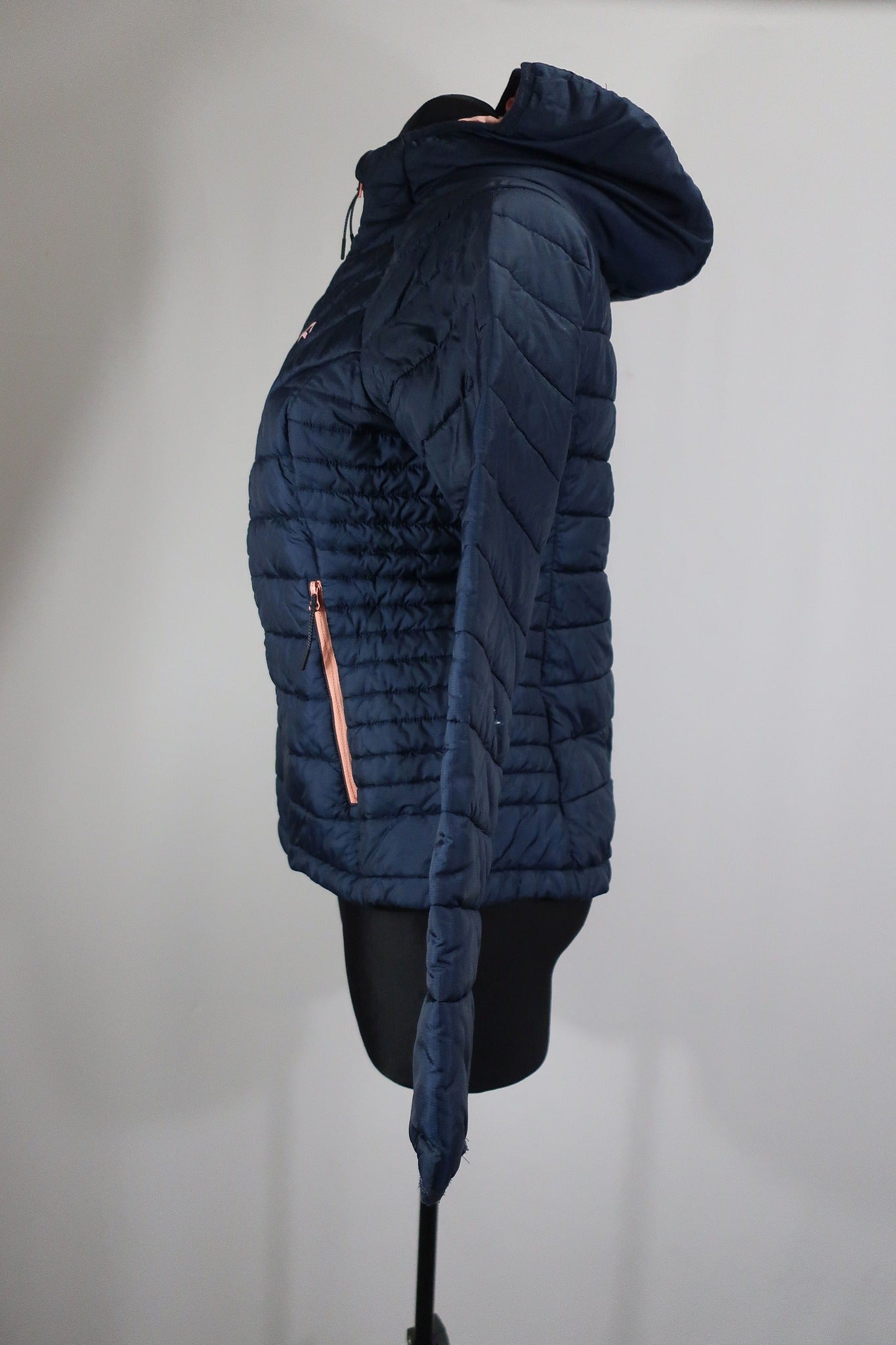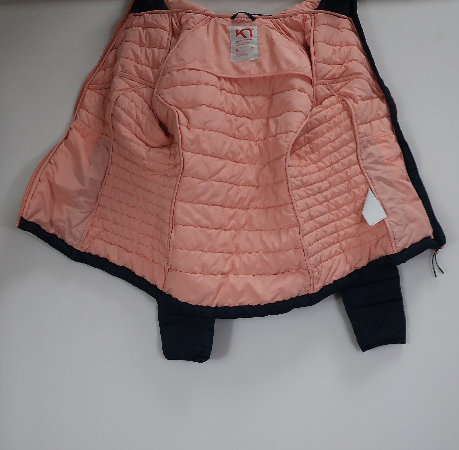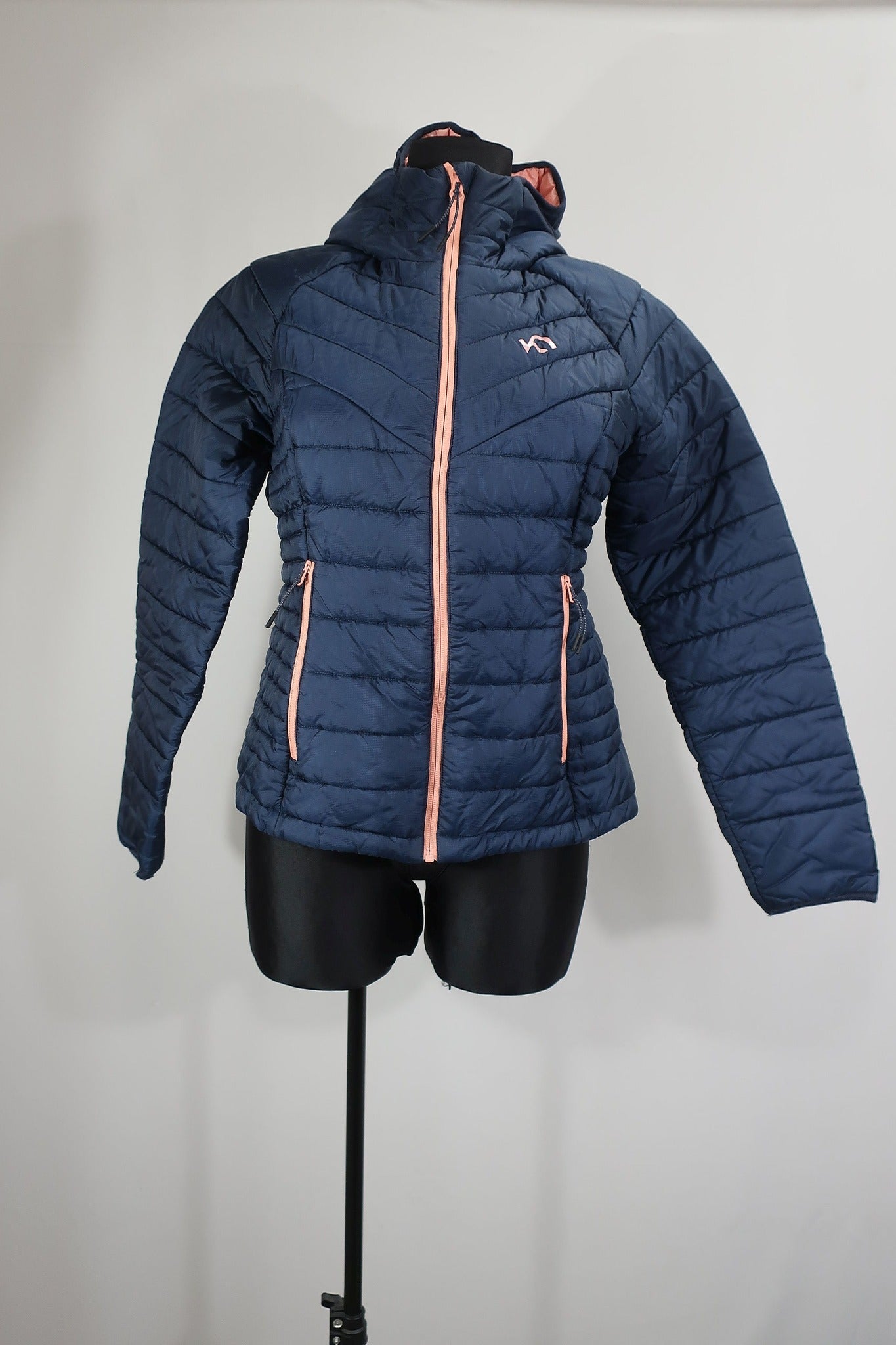 Norvegų gamintojo Karitraa moteriška striukė S/M dydis (nurodytas M dydis - į mažesnę pusę - geriausia žiūrėti pagal išmatavimus). Aukštesnė apykaklė apsaugos kaklą nuo perpūtimų, su kapišonu. Su pašiltinimu. Pašiltinimas - Primaloft (pūkų pakaitalas). rankovės viduje ties alkūne yra nedidelis susiuvimas. Dailiai liemenuota.
