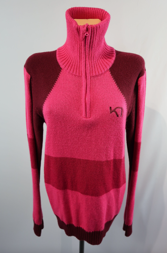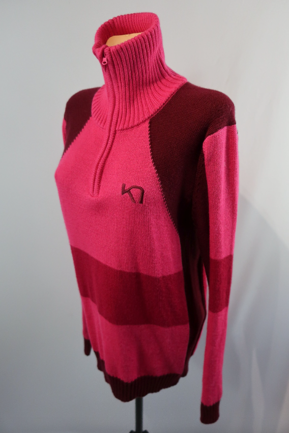 Norvegų gamintojo Karitraa moteriškas megztinis L dydis. Puikiai tiks kasdienybei ir aktyviai veiklai. Kokybiškas, patogus, nevaržantis judesių. Puikiai šildys. Sudėtis -50proc vilna, 50 proc akrilinas. Aukštesnė apykaklė apsaugos kaklą nuo perpūtimų.