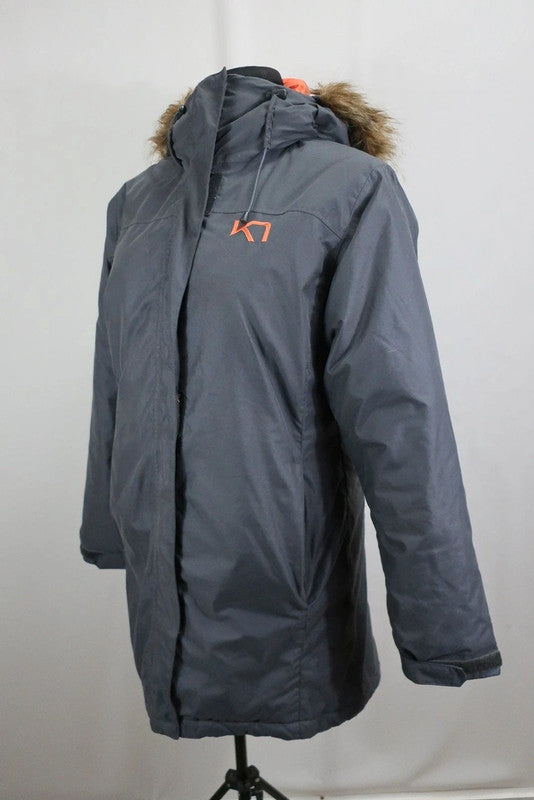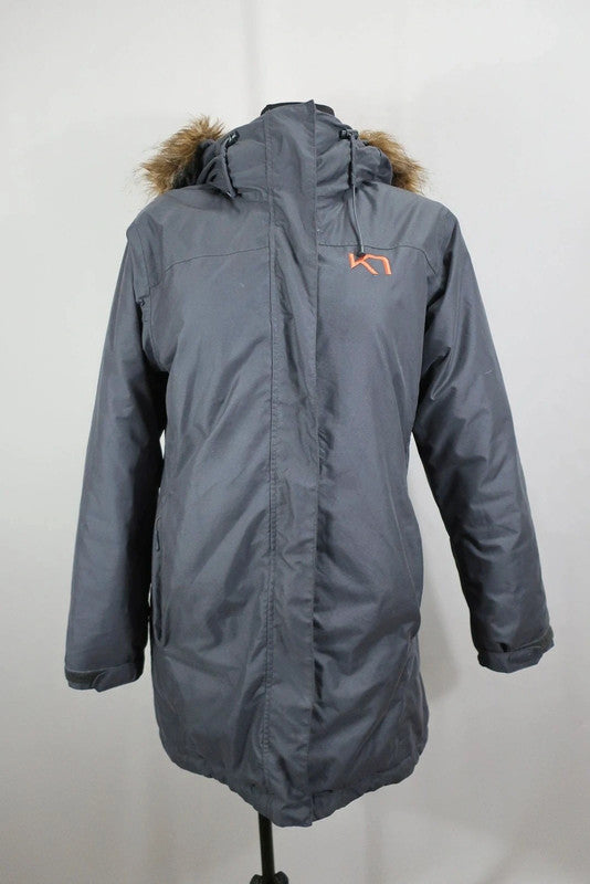 Norvegų gamintojo Karitraa moteriškas puspaltis/parka M/L dydis (nurodytas L dydis - geriausia žiūrėti pagal išmatavimus). Puikiai tiks kasdienybei ir aktyviai veiklai. Kokybiškas, patogus. Su pašiltinimu - tiks vėsesniems orams. Atsparus drėgmei, vėjui. Spalva - pilka. Kailis nuo kapišono gali nusisegti.