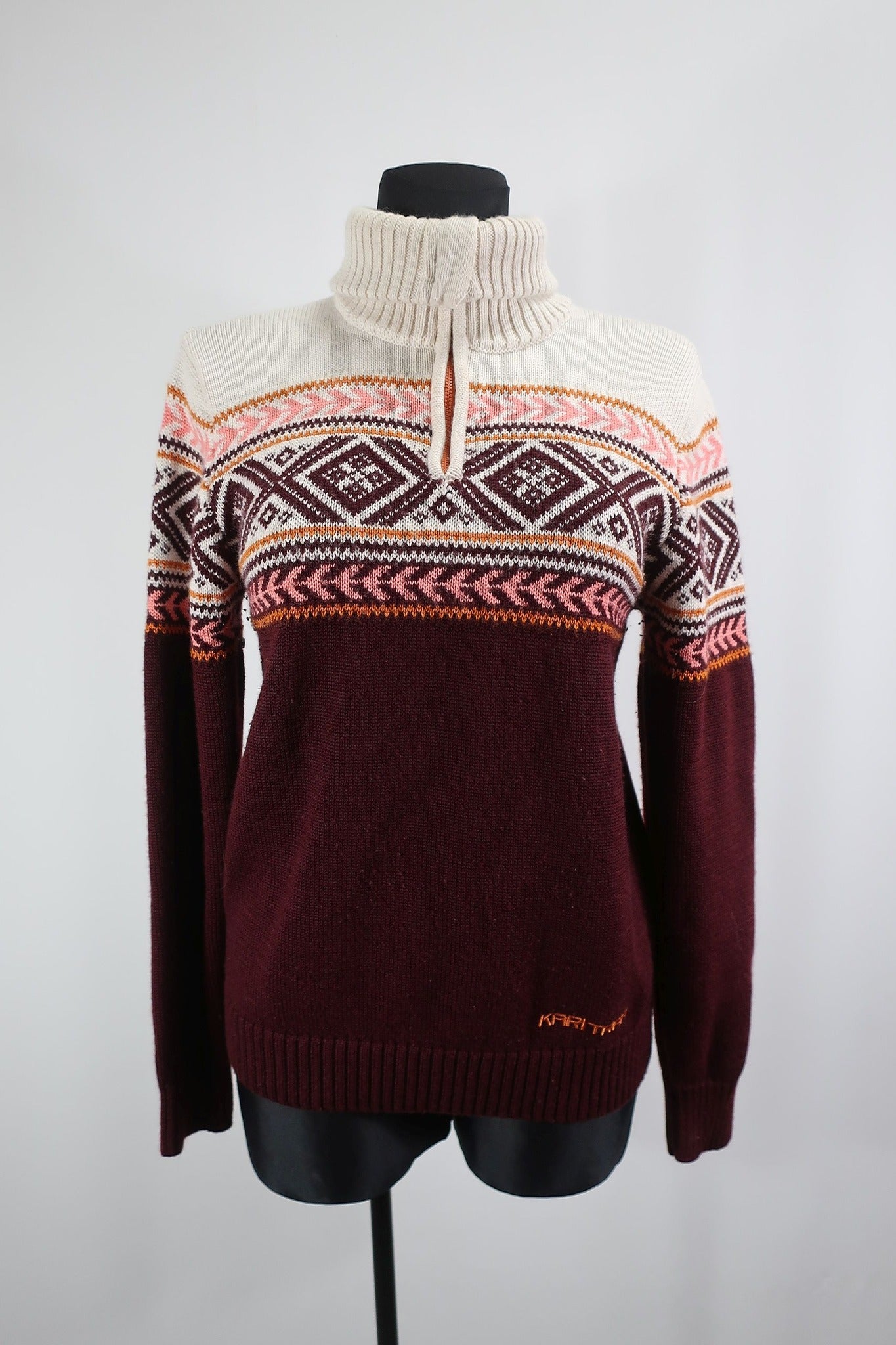 Norvegų gamintojo Karitraa moteriškas vilnonis megztinis L dydis. Puikiai tiks kasdienybei ir aktyviai veiklai. Kokybiškas, patogus, nevaržantis judesių. gražus modelis. Puikiai šildys. Sudėtis -50proc vilna, 50 proc akrilinas. Aukštesnė apykaklė apsaugos kaklą nuo perpūtimų. Modelis - Karitraa vossa h/z knit