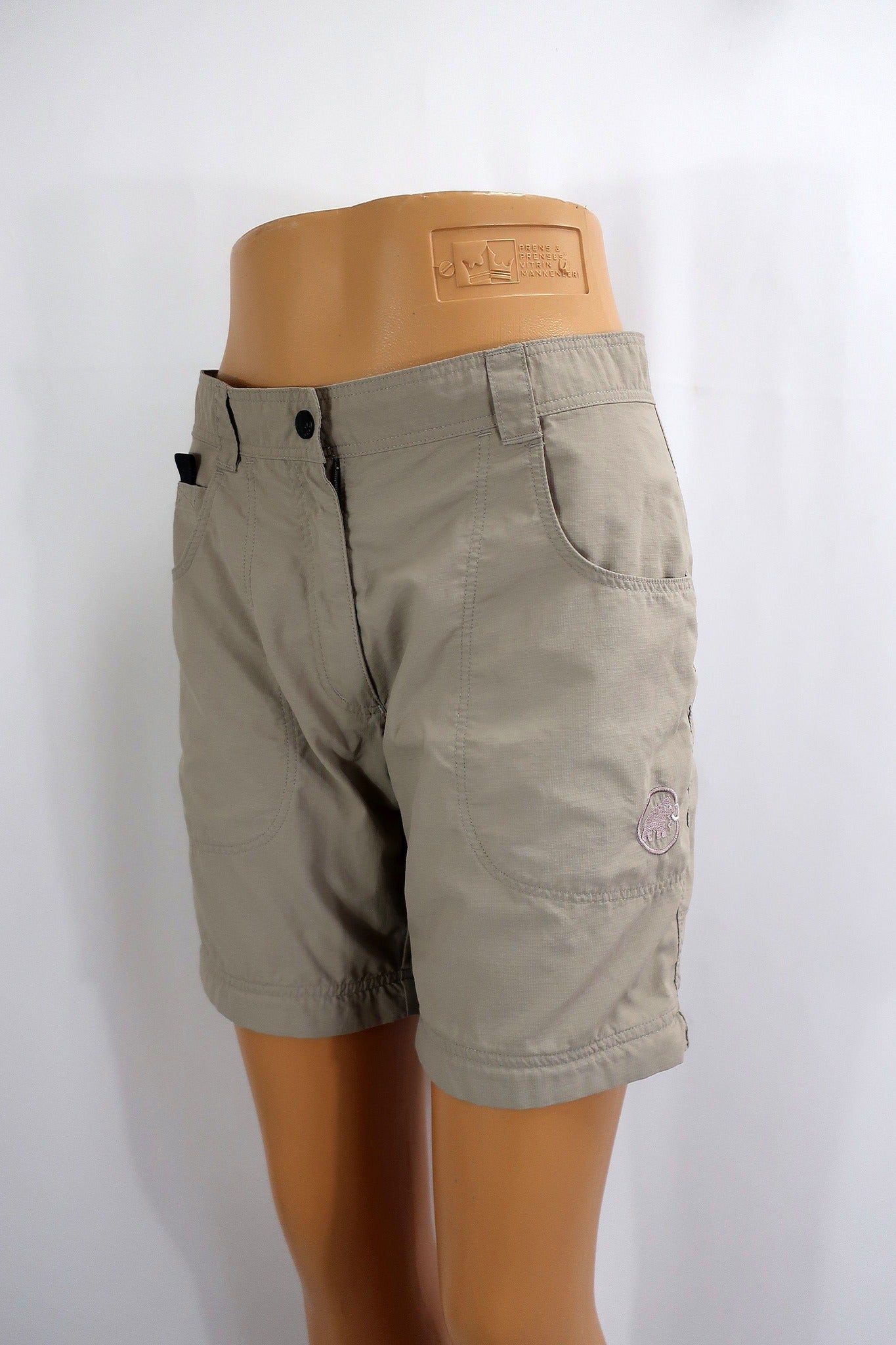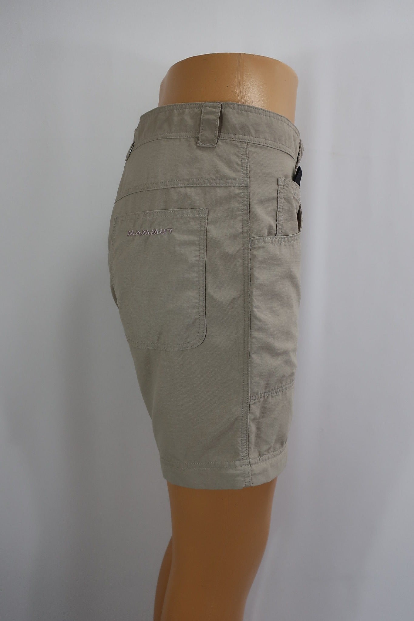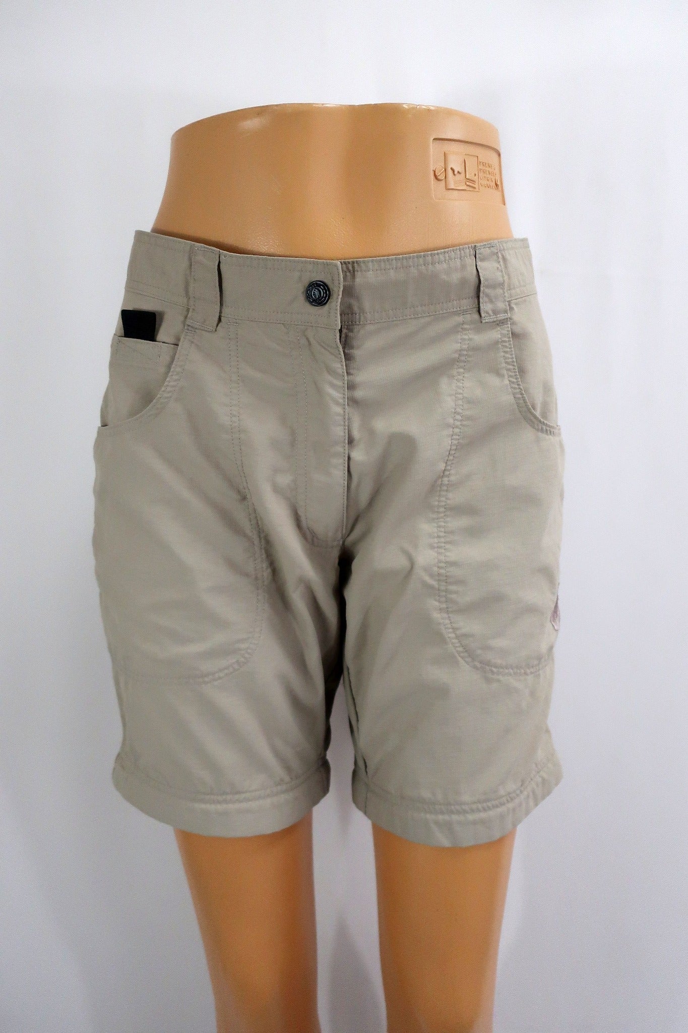 Brangaus ir patikimo Mammut moteriški šortai 36/38 dydis (nurodytas 38 dydis - geriausia žiūrėti pagal išmatavimus). Puikiai tiks bet kokiai aktyviai veiklai - kelionėms, žygiams, laisvalaikiui gamtoje ir kasdienybei. Daug kišenių. Yra galimybė įsiverti diržą. Spalva - beige.