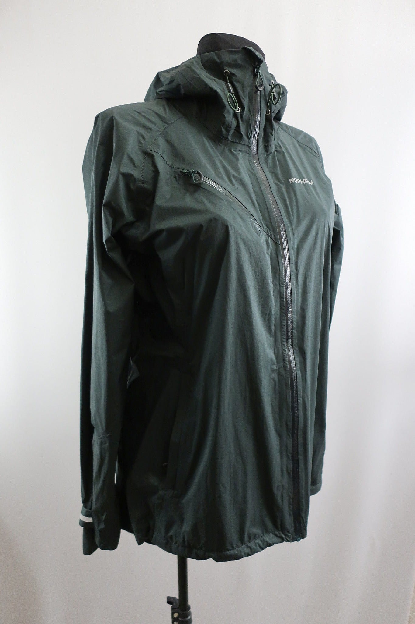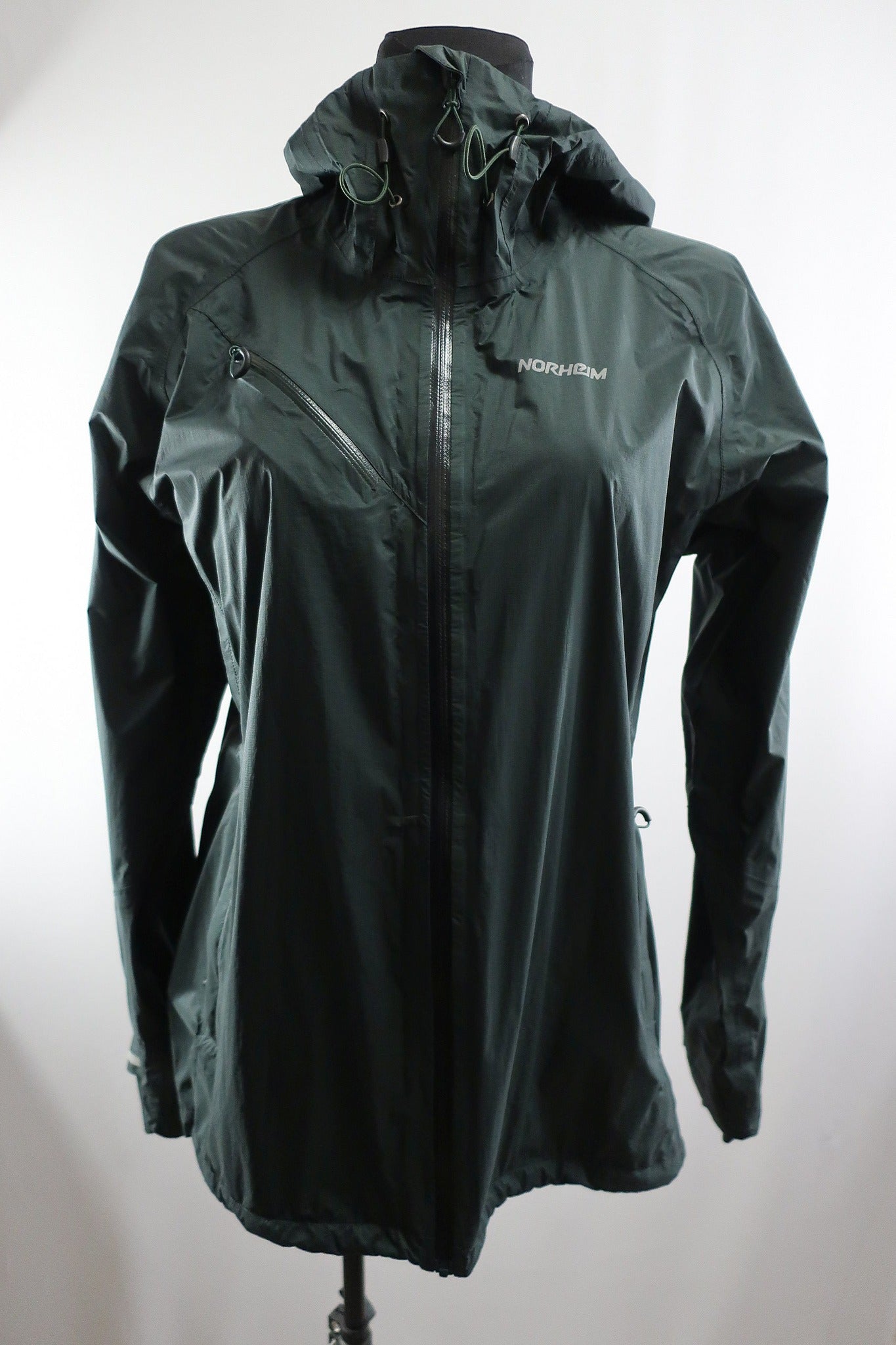 Skandinavų gamintojo Norheim moteriška lengva striukė L dydis. Labai lengva - patogu keliaujant - užima itin mažai vietos, svoris mažas. Puikiai tiks bet kokiai aktyviai veiklai -kelionėms, kalnų kelionėms, žygiams, laisvalaikiui gamtoje, bei kasdienybei. Atspari drėgmei, vėjui. Laminuota. Kokybiška, patogi. Užtrauktukai apsaugoti nuo drėgmės patekimo. Aukštesnė apykaklė apsaugos kaklą nuo perpūtimų, su kapišonu, kuris gali susitraukti. Dailiai liemenuota. Trys kišenės. Spalva - tamsiai žalia.