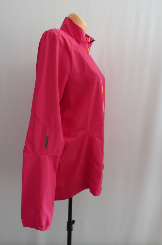 Reebok moteriška lengva bėgimo striukė/švarkas/vėjinukė L/XL dydis (nurodytas L dydis - geriausia žiūrėti pagal išmatavimus). Skirta bėgimui, sportui, laisvalaikiui ir pan. Kokybiška, patogi, lengva. Atspari vėjui. Su tinkliniu pamušalu.